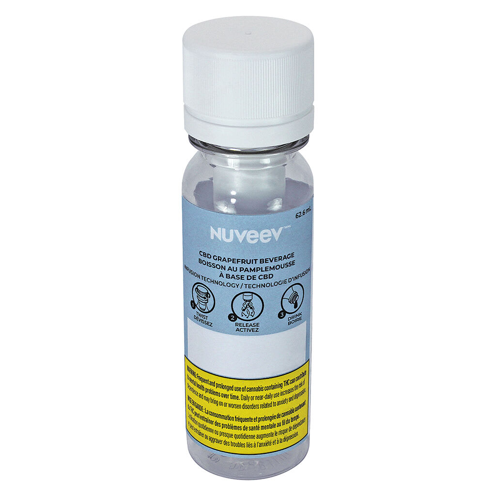 Customize your dosing. The pack contains four 25 mg CBD caps to allow you to select your dosing from 25 mg to 100 mg of CBD. Fresh and subtle grapefruit flavour. Simply twist the cap to infuse when youre ready to serve. Nuveev CBD 3+ 1 is powered by Vessl technology, a patented bottle closure that mixes and dispenses ingredients immediately prior to use, ensuring precision dosing while reducing degradation of cannabinoids and eliminating the need for chemical preservatives. Our cap also helps to break the cycle of single use bottles and creates less landfill. Bottles are reusable and all one needs to do is buy cap refills. This innovative approach greatly reduces our environmental impact and makes our drinks easily portable.